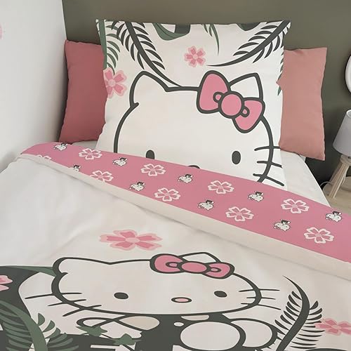 Hello Kitty - Housse De Couette Hello Kitty 140x200 cm + 1 taie d'oreiller 63x63 cm - 100% Coton - Blanc