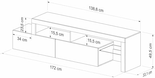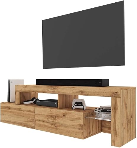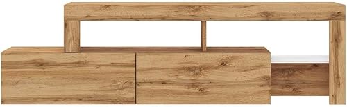Selsey Meuble TV 172 cm Armoire De Télévision Debout Asymétrique Éclairage LED Façade Noire Chêne Wotan Asten