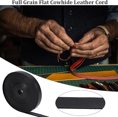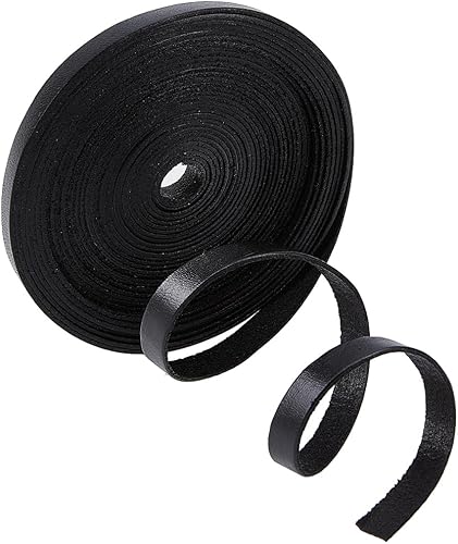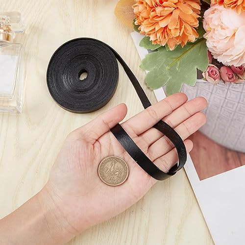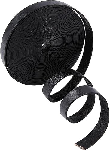 GORGECRAFT 5m*8mm*1mm Bandes de Cuir Véritable Cordon Plat en Cuir Noir Bracelet en Cuir de Vache Corde de Tressage pour Bracelets Collier Fabrication de Bijoux Ceintures Bricolage Atelier D'Artisanat