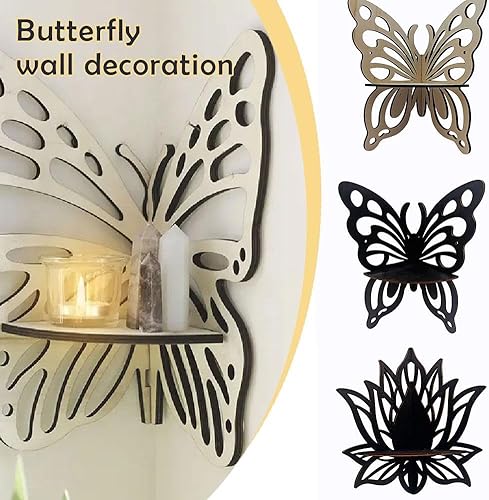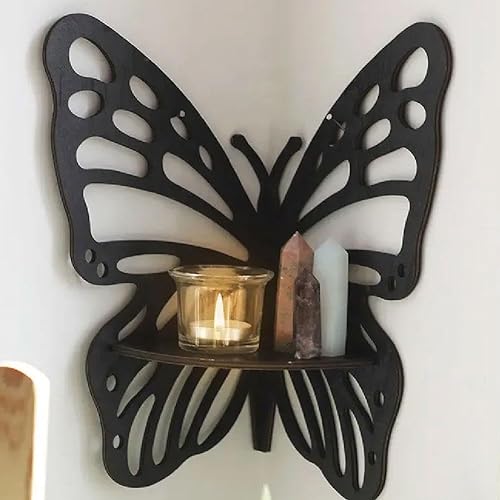 Étagère d'angle flottante en bois en forme de papillon, étagère d'angle rustique pour salle de bain, étagère de rangement, étagère d'angle pour bureau, chambre à coucher
