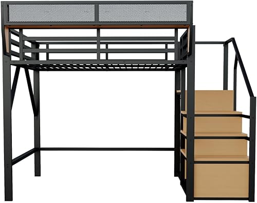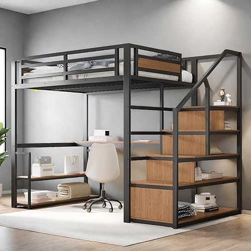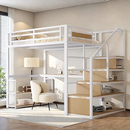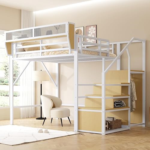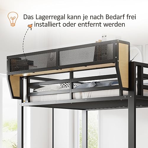 Seyakany Lit Mezzanine 90x200 avec Rangement sécurisé, échelles, lit Enfant avec étagère Flexible, Structure en métal, adapté aux Adolescents et aux Enfants, sans Matelas, Blanc