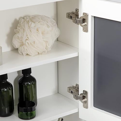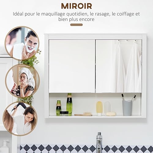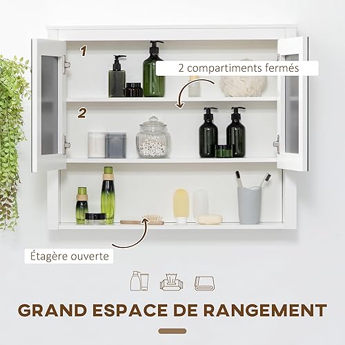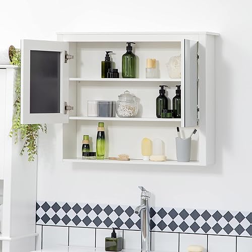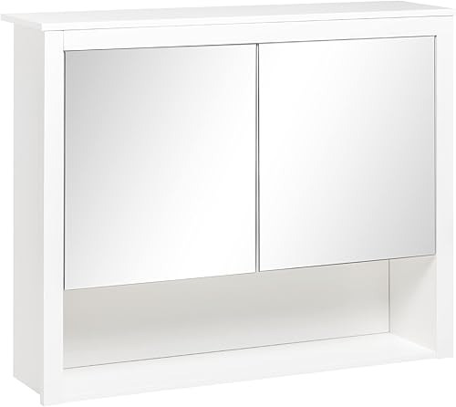 HOMCOM Armoire de Salle de Bain avec Miroir, Armoire Murale de Salle de Bain, avec étagère de Rangement Ouverte, 2 Portes-Miroir, 80 x 20 x 65 cm, Blanc