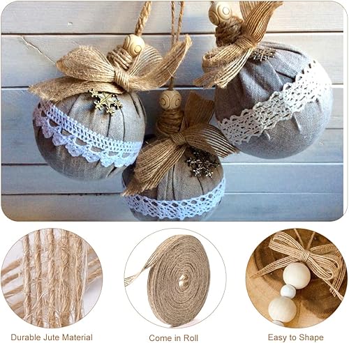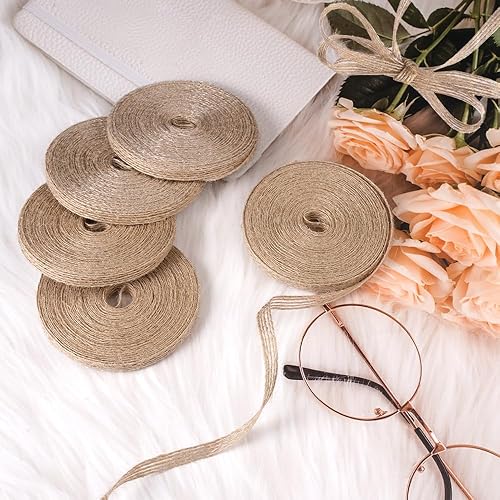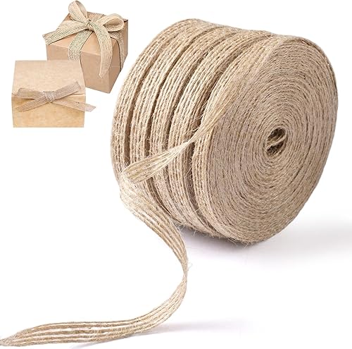 Naturel Ruban de Jute Ruban, 0.6cm Ficelle Jute Rouleau Toile de Vintage pour Emballages Cadeaux,Noël Décorations, 50m
