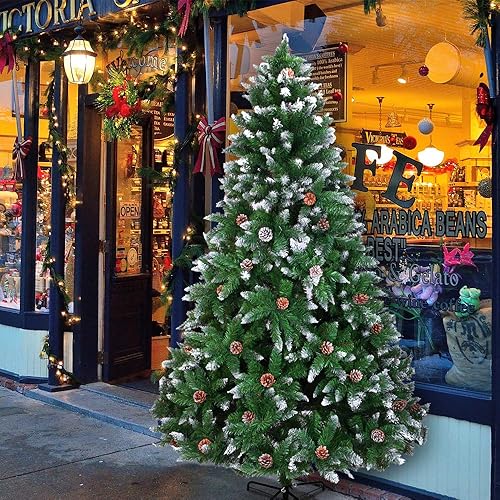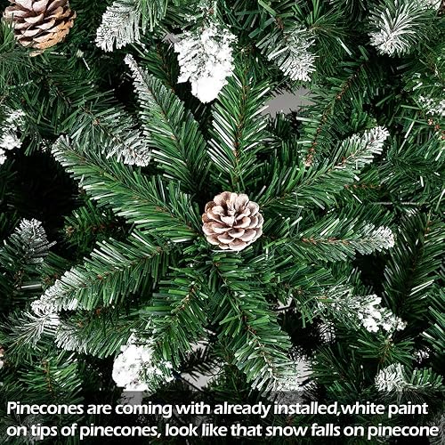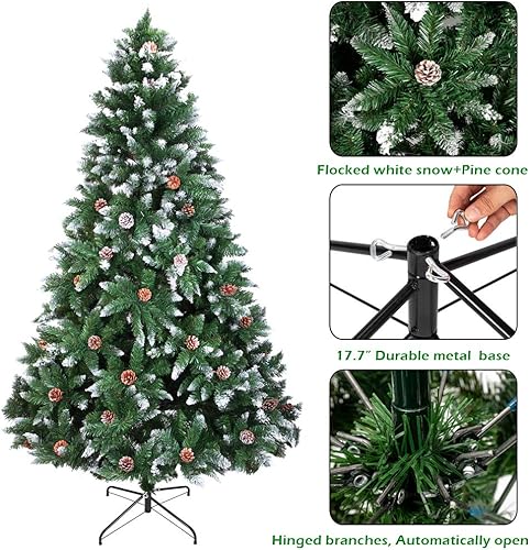 Sapin de Noël Artificiel 180 cm avec Pommes de Pin, Arbre de Noël avec 900 Branches et Support Métallique Robuste pour Bureau, Maison, Magasin et Fêtes de Fin d'Année