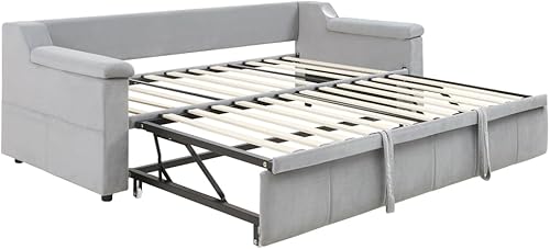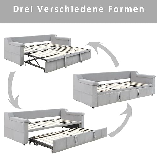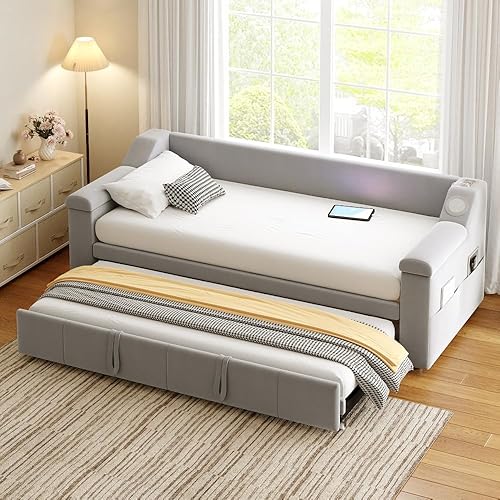 Canapé lit rembourré 90/180*190 avec port de charge USB,canape lit 2 places convertible,accoudoirs plus épais,système audio Bluetooth intelligent,compartiment de rangement,tissu velours,gris (Grey B)