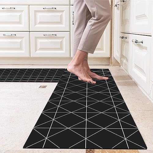 LIBRNTY 2 pièces Tapis Cuisine,Tapis Cuisine antidérapant Lavable,Cuisine antidérapants,Tapis de Sol pour l'intérieur,Tapis de Cuisine Anti-Fatigue au Design Abstrait Moderne (Noir 121)