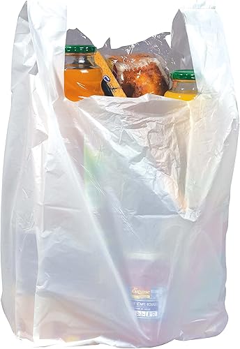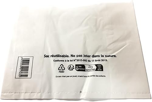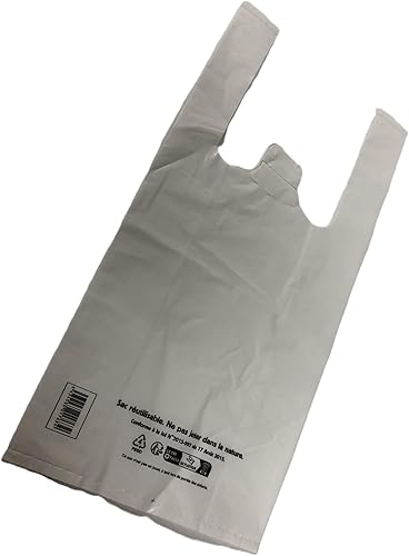 PROMOSAC Sac Bretelle Blanc 50 µ réutilisable - 45 x 26 + 12 cm Carton de 500