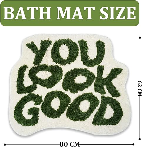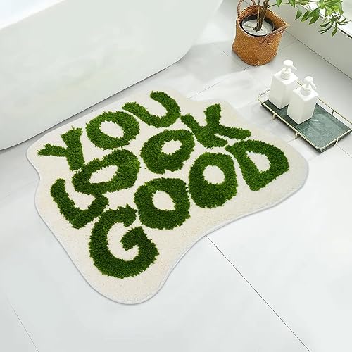 YOOCHUENG Tapis de Bain,Tapis de Douche Antidérapant Alphabet,Créativité Carpette Rigolo,Poil Moyen Tapis pour Chambre à Coucher,Carpette Absorbant Salle de Bain,Vert