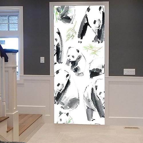 Stickers Porte 3D Muraux Auto-Adhésif Porte Autocollants - Panda Animal De Dessin Animé - Pvc Non Toxique Porte Papier Peint Pour Salon Chambre Décoration 77X200 Cm - Amovible Affiche Art Autocollant