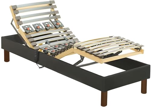 Vente-unique - Sommier électrique de Relaxation déco Lattes et plots - 80 x 200 cm - Tissu - Anthracite - Forenza de DREAMEA