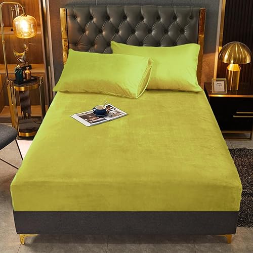 Drap-housse en flanelle 180 x 200 cm - En peluche - Vert olive - Chaud - Pour lit à sommier tapissier - En tissu éponge - Toucher cachemire - Uni - Pour matelas haut de 180 x 200 cm - Bonnet haut