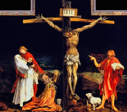 Reproduction / Poster: Mathis Gothart Grünewald 'Le retable d Issenheim Première face d exposition Panneau central Christ en croix' - Affiche, Reproduction artistique de haute qualité, 100x90 cm