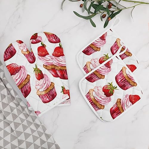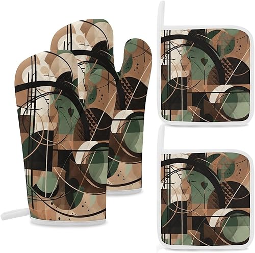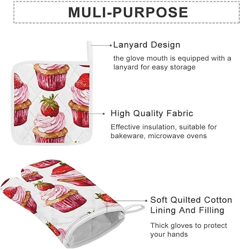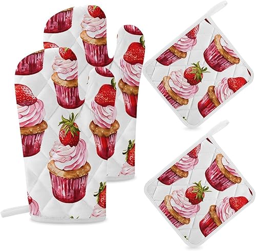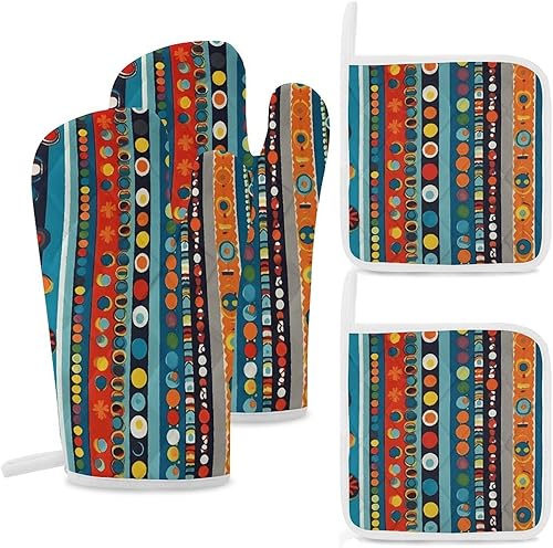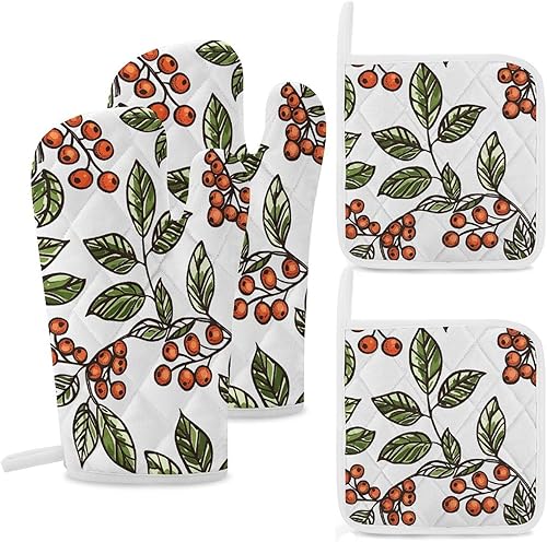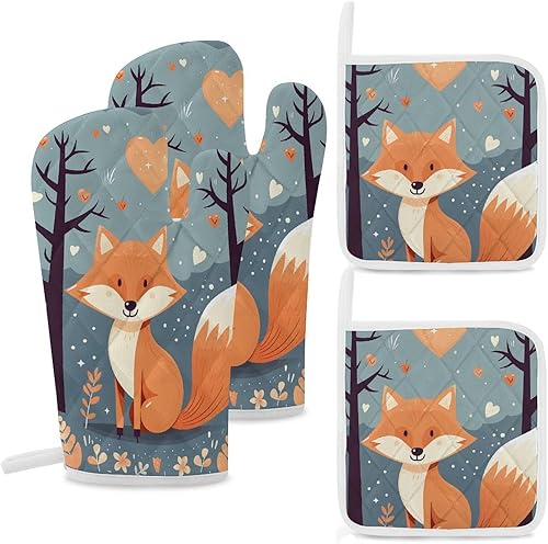 Lot de 4 maniques et maniques de cuisine - Motif renard de dessin animé - Gants de cuisine antidérapants et lavables