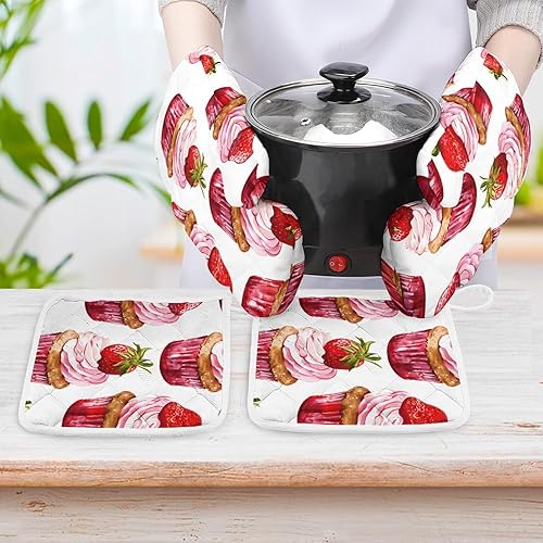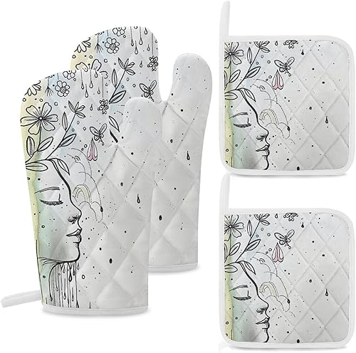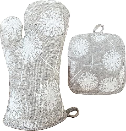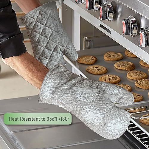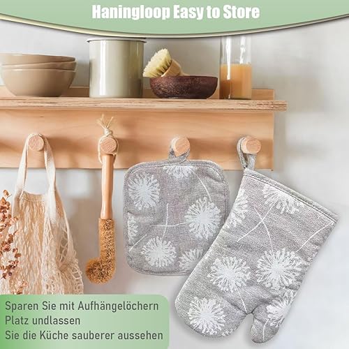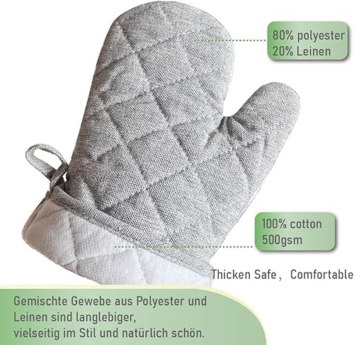 Ensemble de gants de barbecue en lin et maniques - Gants de four pour la cuisson, la cuisine, le barbecue, les gants de cuisine lavables (gris)