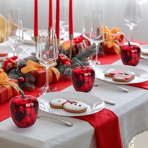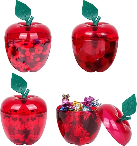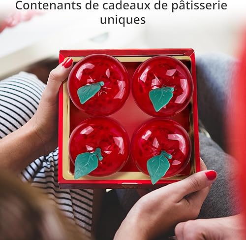 Winter Shore Grandes Boites en Forme de Pomme Rouge [Lot de 4] - Rangement Pommes en Plastique pour Biscuits, Bonbons, Chocolats - Fausses Pommes Décoratives Transparentes pour Noël, Mariage & Fête