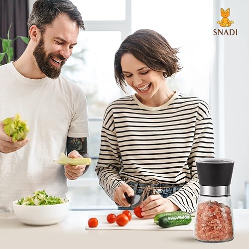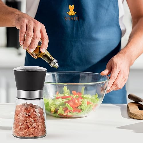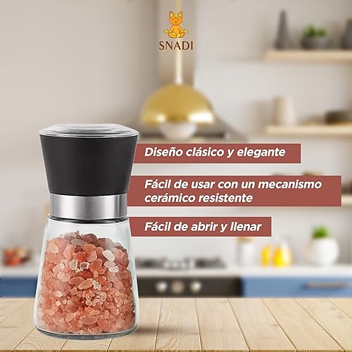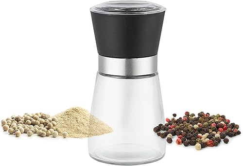 Moulin à sel, poivre et autres épices. Corps en verre, tête en plastique coloré élégant, roulements en céramique. (Noir)