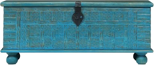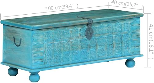 vidaXL Coffre de Rangement, Boîte de Rangement, Organisateur de Chambre à Coucher Salon Salle de Séjour Couloir, Bois de Manguier Massif Bleu