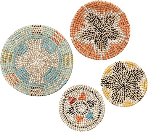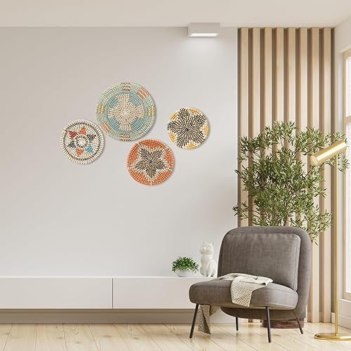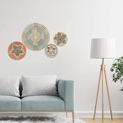 uxcell Paniers muraux bohèmes, décoration murale en paille, 4 pièces, pour salon, chambre, salle à manger, jardin, couloir ou mur d'escalier