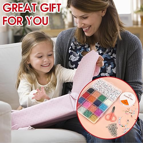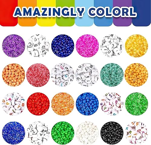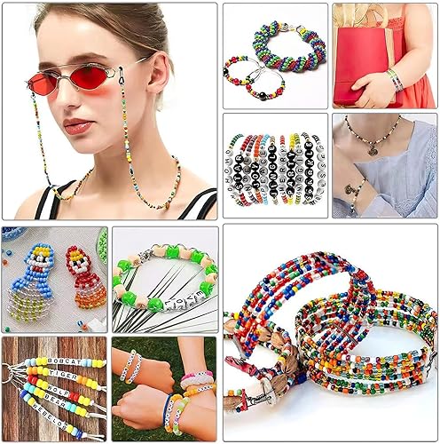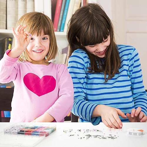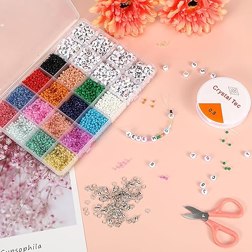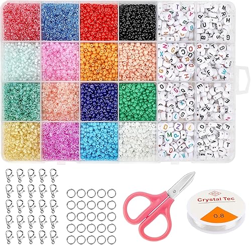 Lot de 14400 Perles Rondes Blanches à Enfiler Avec 50 Fermoirs Mousquetons, 1 Rouleau de Bande éLastique Et BoîTe De 4 X 7 mm