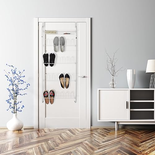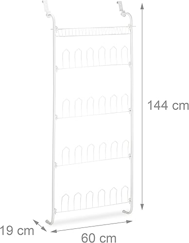 Relaxdays Range-chaussures portes, 12 paires, à suspendre, rangement 4 niveaux, fer, HLP : 144 x 60 x 19 cm, blanc