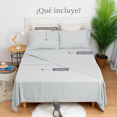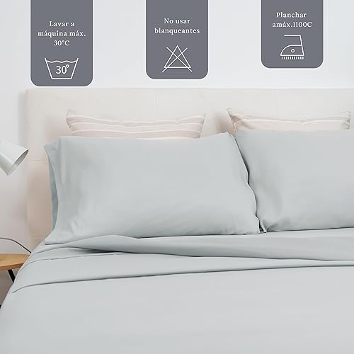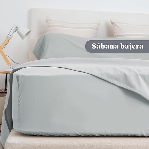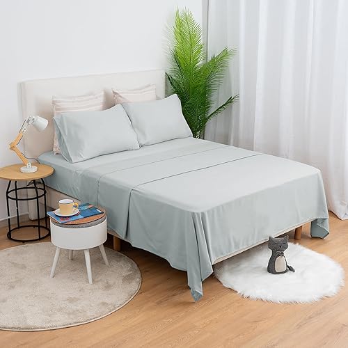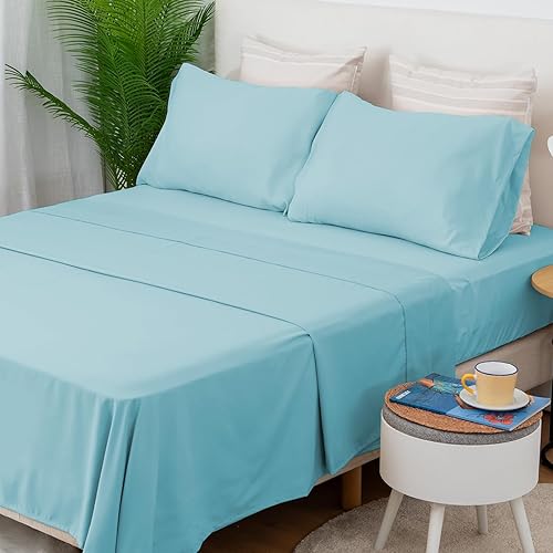Parure de Drap pour Lit de 90cm, Parure de Lit Simple 100% Microfibre, Ensembre de Draps 3 Pièces Respirant Doux au Toucher - Comprend 1 Drap plat, 1 Drap-Housse et 1 Taie d'Oreiller - Vert d'eau