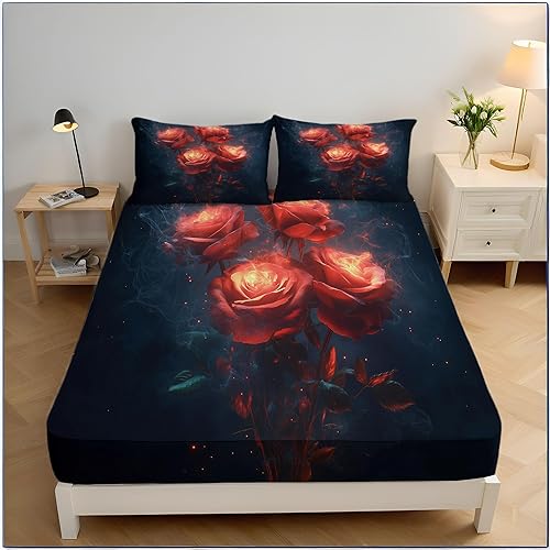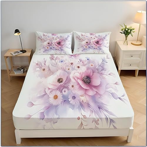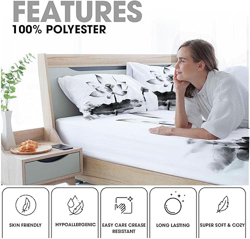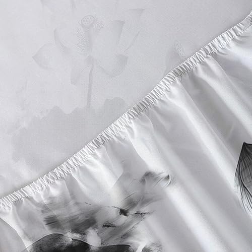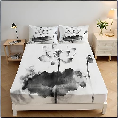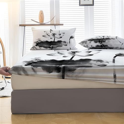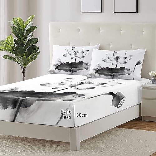 Drap Housse Grand Bonnet De 30 Cm Microfibre Plantes À Encre Motif Parure Drap De Lit Esthétique Chinoise Drap-Housse 160X200Cm Et 2 Taie d'oreiller Respirant pour Matelas Épais