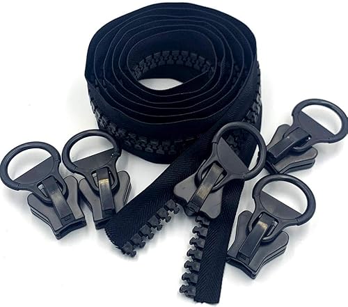 WKXFJJWZC Fermeture éclair en résine plastique avec 5 curseurs 20 # Noir 1,8 m x 14 mm de large, pour couture, artisanat, sacs, tentes, bateau, toile