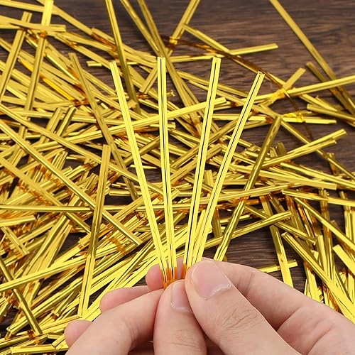 LUTER 800 Pièces 10 cm Liens Torsadés Métalliques pour Sacs de Bonbons, Sacs de Café, Collations, Gâteaux, Articles de Fête (Or)?Embellissement Atmosphère de Noël