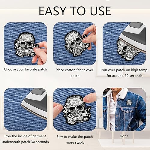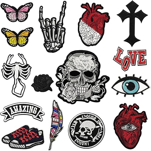 Monsully Cool Design Broderie Patch Thermocollant, Broderie Autocollant Iron on Patches Iron on Patches Patchs Thermocollants Punk Assortis Motif de Boule d’Oeil de Crâne pour Vêtements, Sacs à Dos
