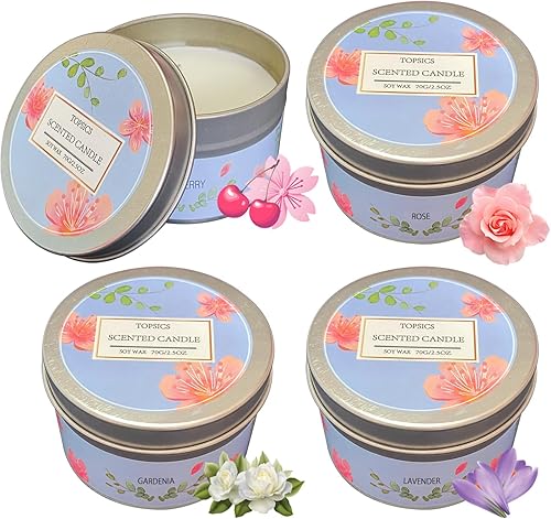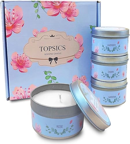Topsics 4 Pièces Bougie Parfumée Ensemble Cadeau, Bougies en 100% Cire De Soja Naturel, Bougies d'Aromathérapie pour Cadeaux pour Noël