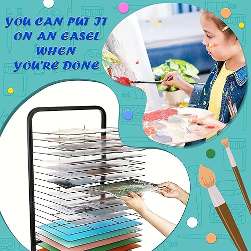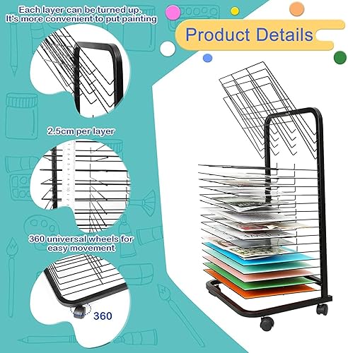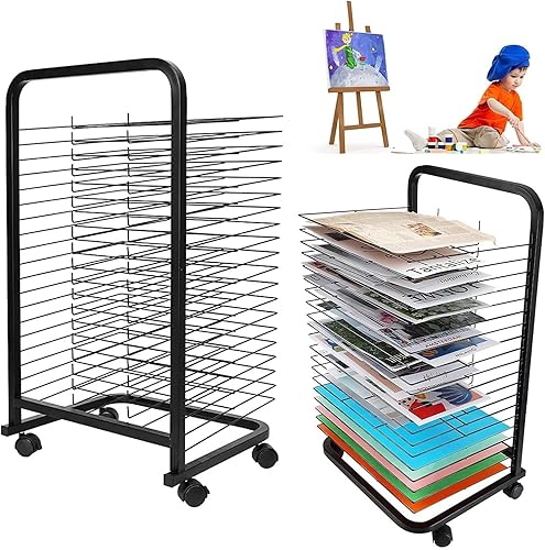 HhYyLr Support De Séchage d'art Mobile pour Salles De Classe,Support De Rangement d'art Mobile en Métal À 20 Étagères,pour Œuvres d'art, Papier De Peinture Et Support De Séchage d'impression