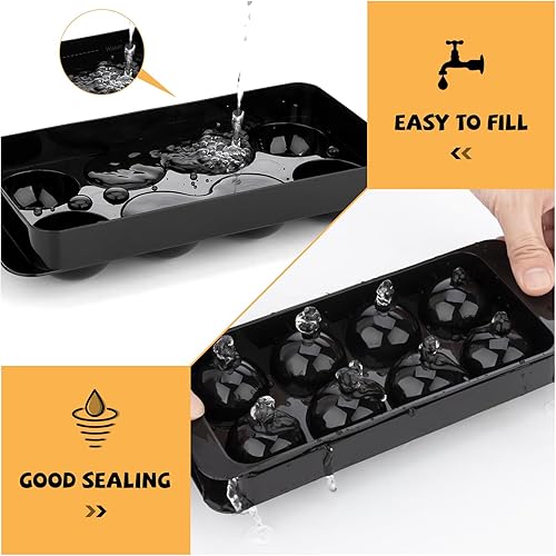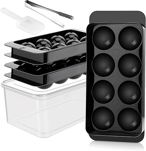 Grand bac à glaçons, moule à glaçons rond 3 x 8 pièces avec couvercle, bac et cuillère, bac à glaçons rond facile à démouler pour whisky, cocktails, bourbon (noir)