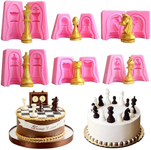 Lot de 12 moules en silicone en forme de pièces d’échec international - Pour pâte à modeler, savon, argile, pâte fimo