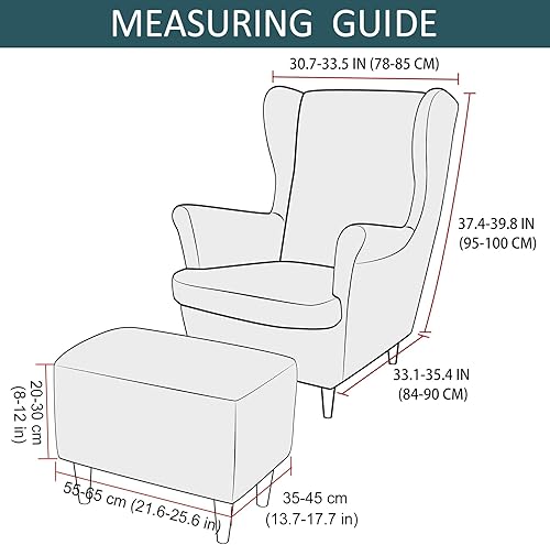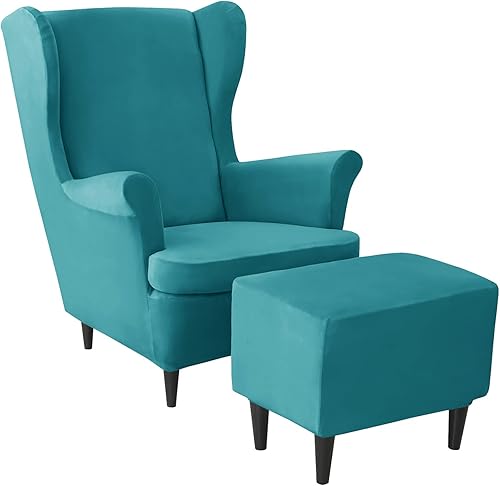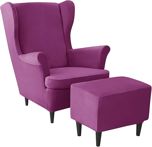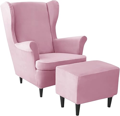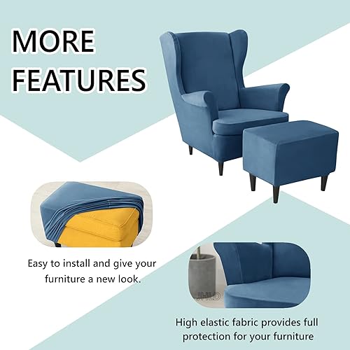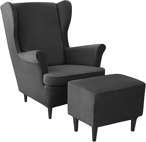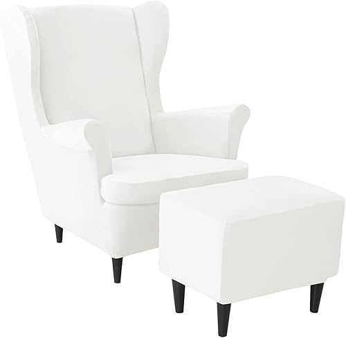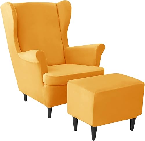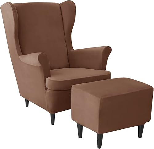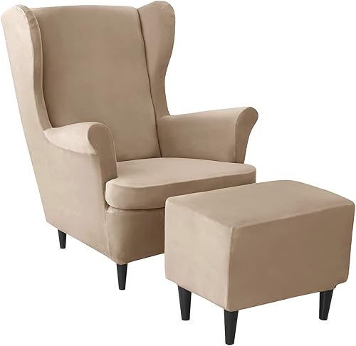 JHLD Velours Housse de Fauteuil à Oreilles Elastique avec Housse de Pouf, Housse de Fauteuil d'oreille Housse de Repose-Pieds 3 pièces Doux Housse pour Fauteuil Amovible Lavable -Chameau-3 pièces