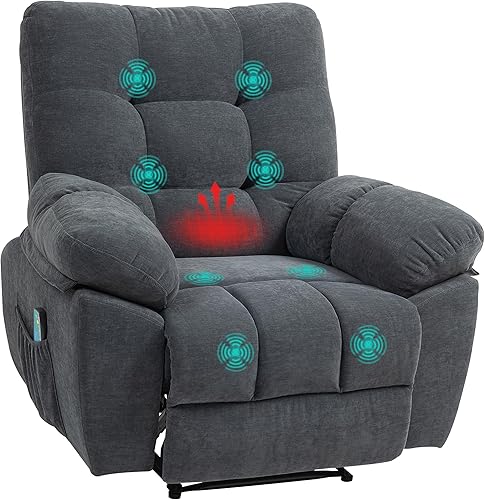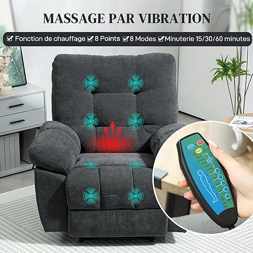 HOMCOM Fauteuil de Massage Fauteuil Relax électrique avec Vibration Chauffage, inclination Manuelle, Chaise de Relaxation Chaise TV avec Repose-Pied, Poche latérale, télécommande, Gris