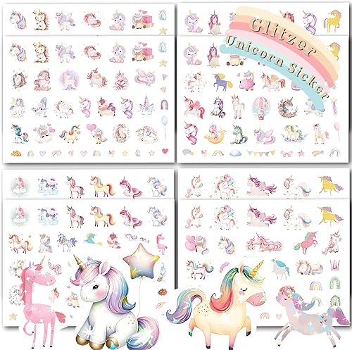 FloraVigo Lot de 8 autocollants à paillettes pour enfants, filles, scrapbooking, albums, cadeaux (licorne)