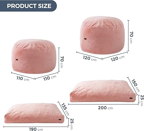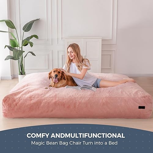 MAXYOYO Pouf lit convertible en pouf - Canapé en mousse avec housse à poils longs et rembourrage moelleux pour adultes, adolescents, invités (rose, 135 x 190 cm)