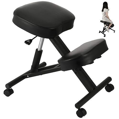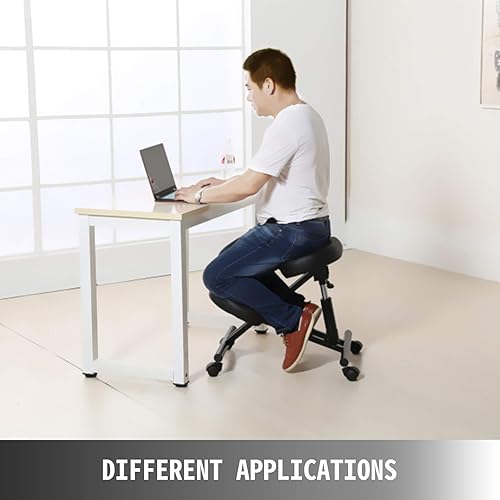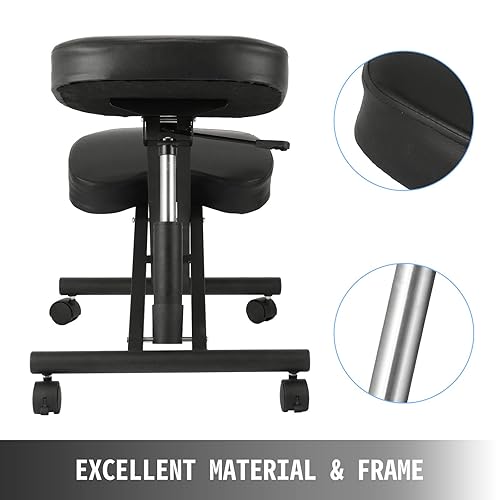 VEVOR Tabouret Ergonomique PVC Tabouret Réglable à Roulettes Capacité 90 kg Fauteuil Ergonomique à Genoux Hauteur 53-71 cm Cadre Acier pour Soulagement de Douleur Correction de Position Bureau Maison