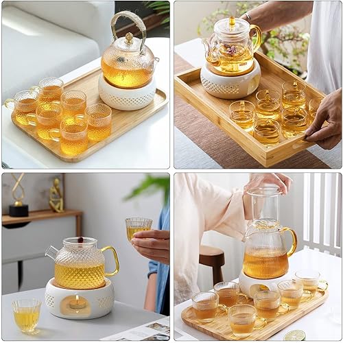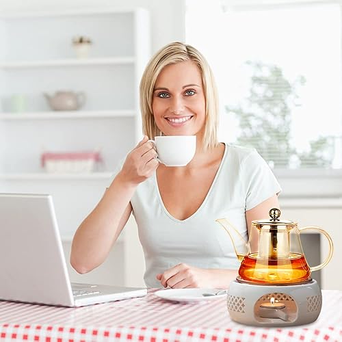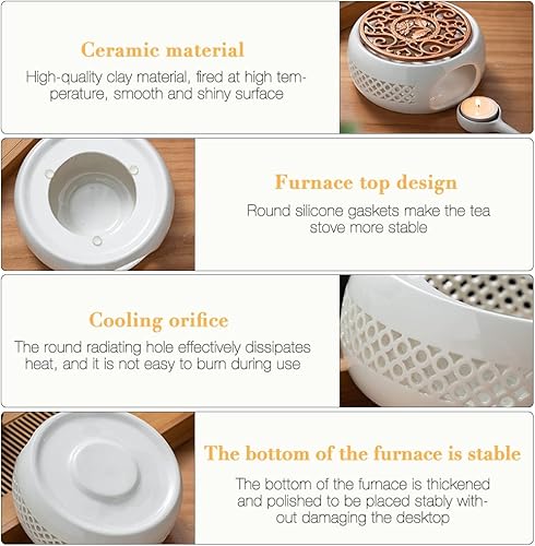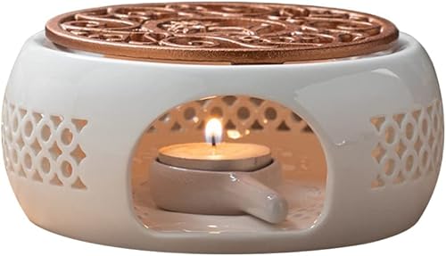 Théière Réchauffeur, Xpsirny Porcelaine Classique Théière Réchauffeur Chauffe-Thé avec Cuillère et Tapis de Poêle, Photophore Chauffe-Théières
