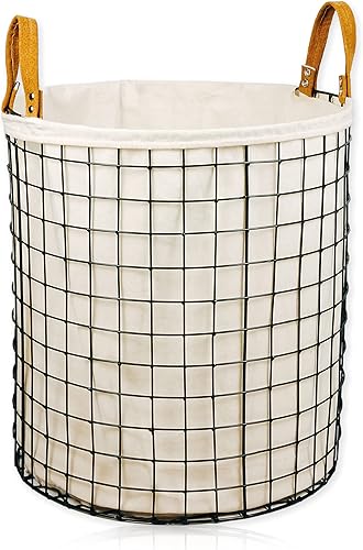 animal-design Panier à linge rond en métal tressé