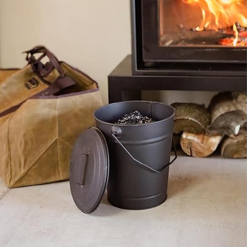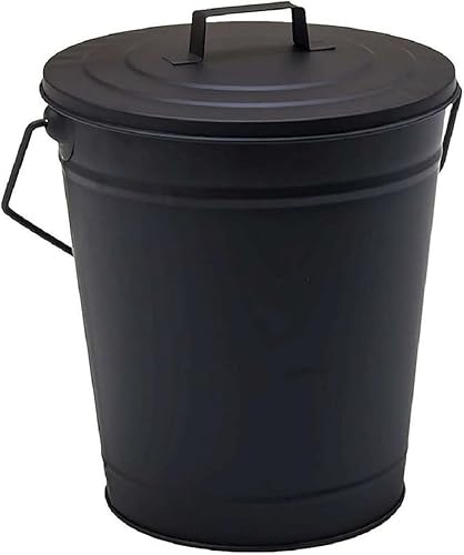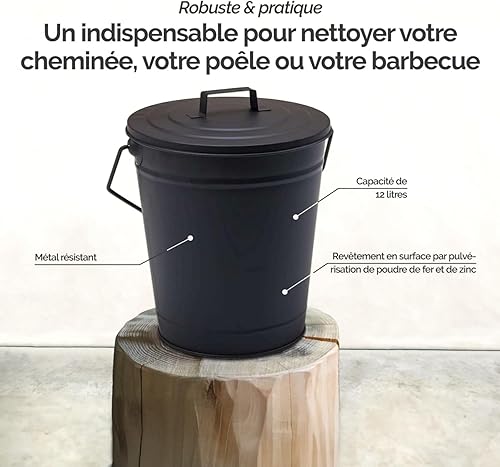 Linxor - Seau, poubelle à cendres 12 L en métal avec couvercle - Noir