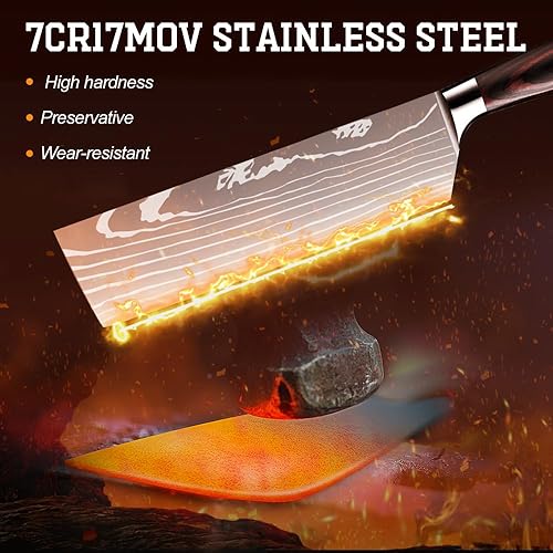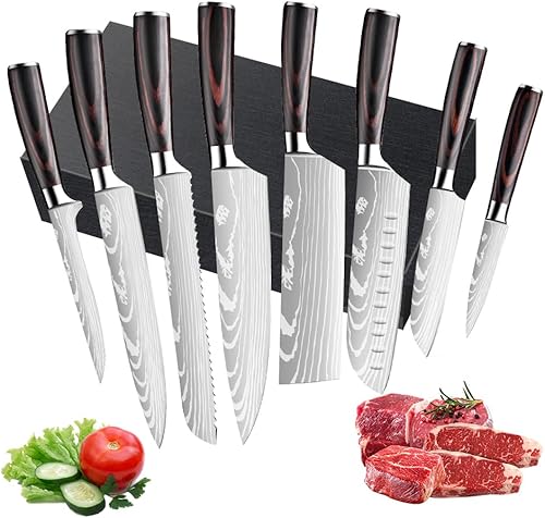 Dfito Set Couteau Cuisine, Couteaux de Cuisine de 9.5-20cm Couteau Cuisine Japonais Viande Ultra Tranchants en Acier IInoxydable 440A Avec étui, Coffret 8 Couteaux Pour les Chefs Professionnels