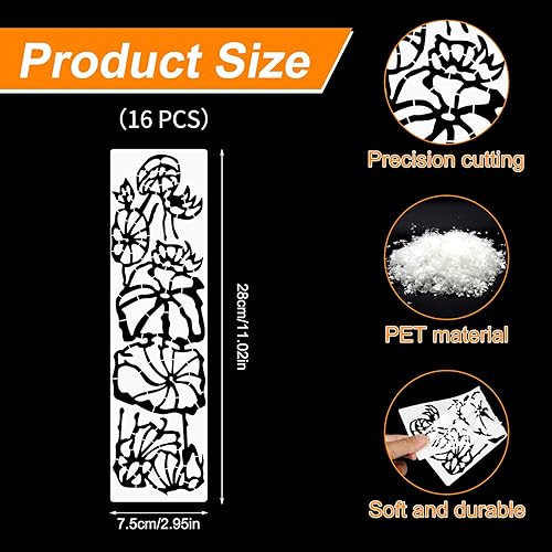JSRQT 16 Pièces Pochoir de Peinture Plante Florale de Vigne,Pochoirs de Fleur,Réutilisables Modèles de Dessin de Feuille pour DIY Scrapbooking Gâteau Bois Meubles Mur Maison Décor 11 x 3 ”