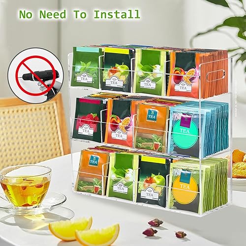 mumisuto BoîTe De Rangement Pour Thé Et Sachets De Thé, BoîTe à Thé En Acrylique Transparent avec 12 Compartiments, éTagèRe Verticale De Rangement Pour Sachets De Thé Pour Le Salon, Le Bureau