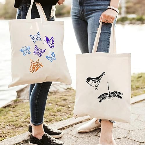 JSRQT 12 Pièces Pochoirs pour Peinture Printaniers,Modèles Papillons Colibris Libellules,Pochoir de Dessin DIY Réutilisable pour Bois, Toile, Meubles, Murs, 14.2 x 10.4 cm