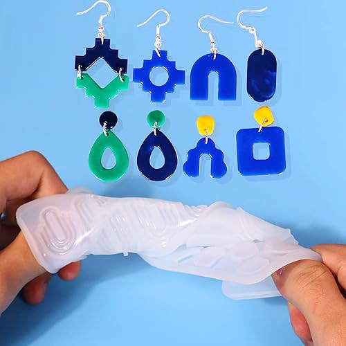 Yayatty 10 PCS Moules en Résine pour Boucles D'oreilles Silicone Moule pour Bijoux, Silicone Moule pour Bijoux avec Crochet D'oreille pour Boucle D'oreille, Pendentif Bricolage