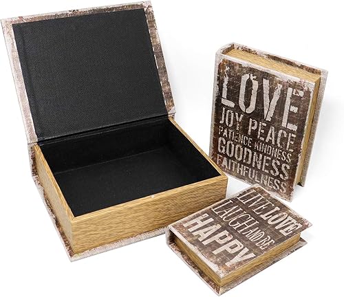 Jolitac Lot de 3 boîtes à livres décoratives, style antique, couvercle magnétique, boîte de rangement en bois foncé vintage