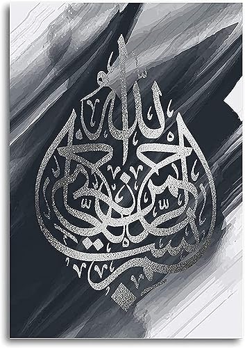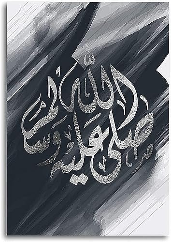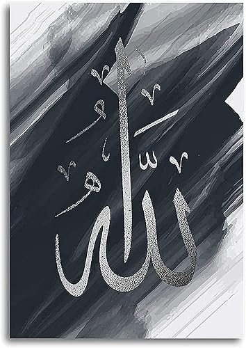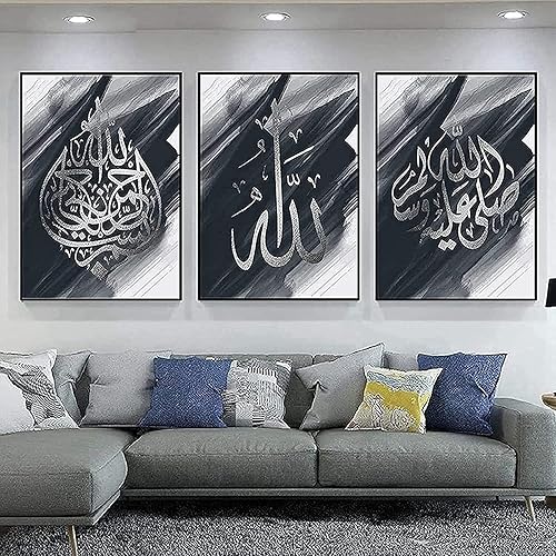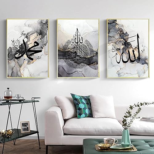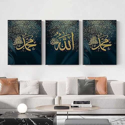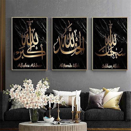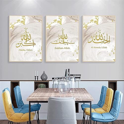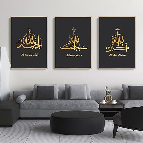 Calligraphie islamique - Tableau islamique - Peinture arabe - Images du Coran sur toile - Décoration murale pour le salon - Affiche, arrière-plan - Sans cadre - 40 x 60 cm x 3 - Lotus doré