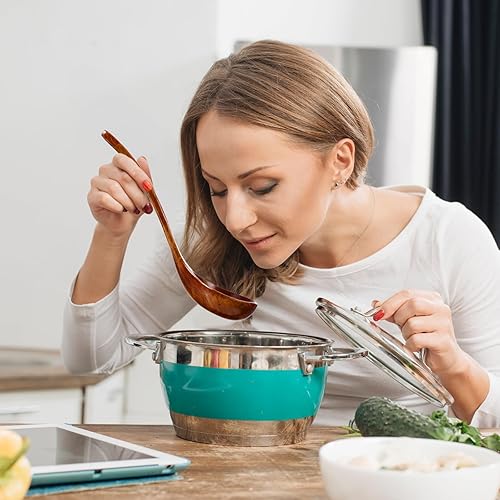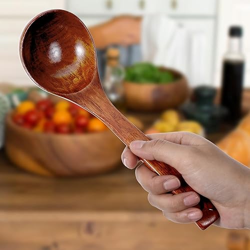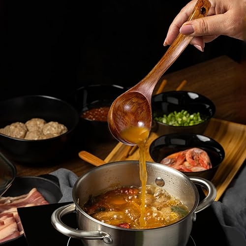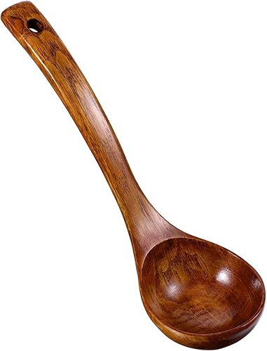 Louche en bois à long manche pour soupe, cuillère de service profonde, grande louche de cuisine en teck pour ustensiles de cuisine, ustensile polyvalent, finition lisse, cuillère légère à long manche
