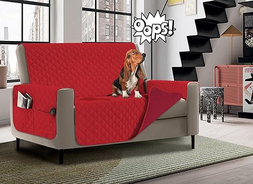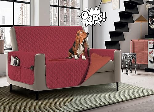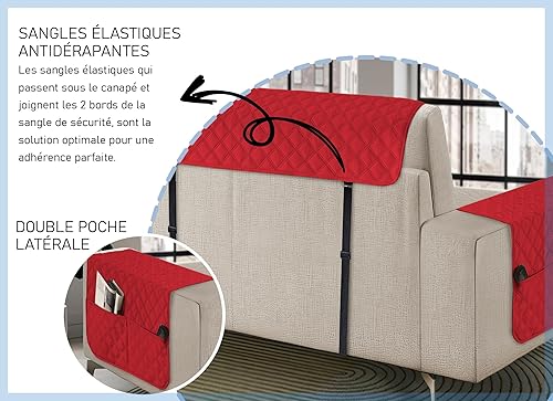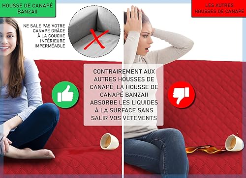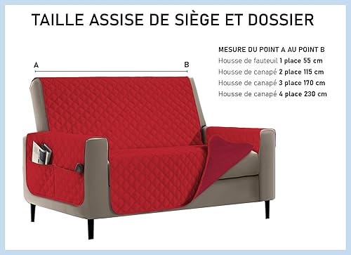 Banzaii Housse de Fauteuil imperméable à l’Eau, Housse de Fauteuil Anti-Tache, matelassé, Bicolor avec Poches pour Objets – pour siège de 55 à 80 cm – 1 Place - Rouge/Bordeaux